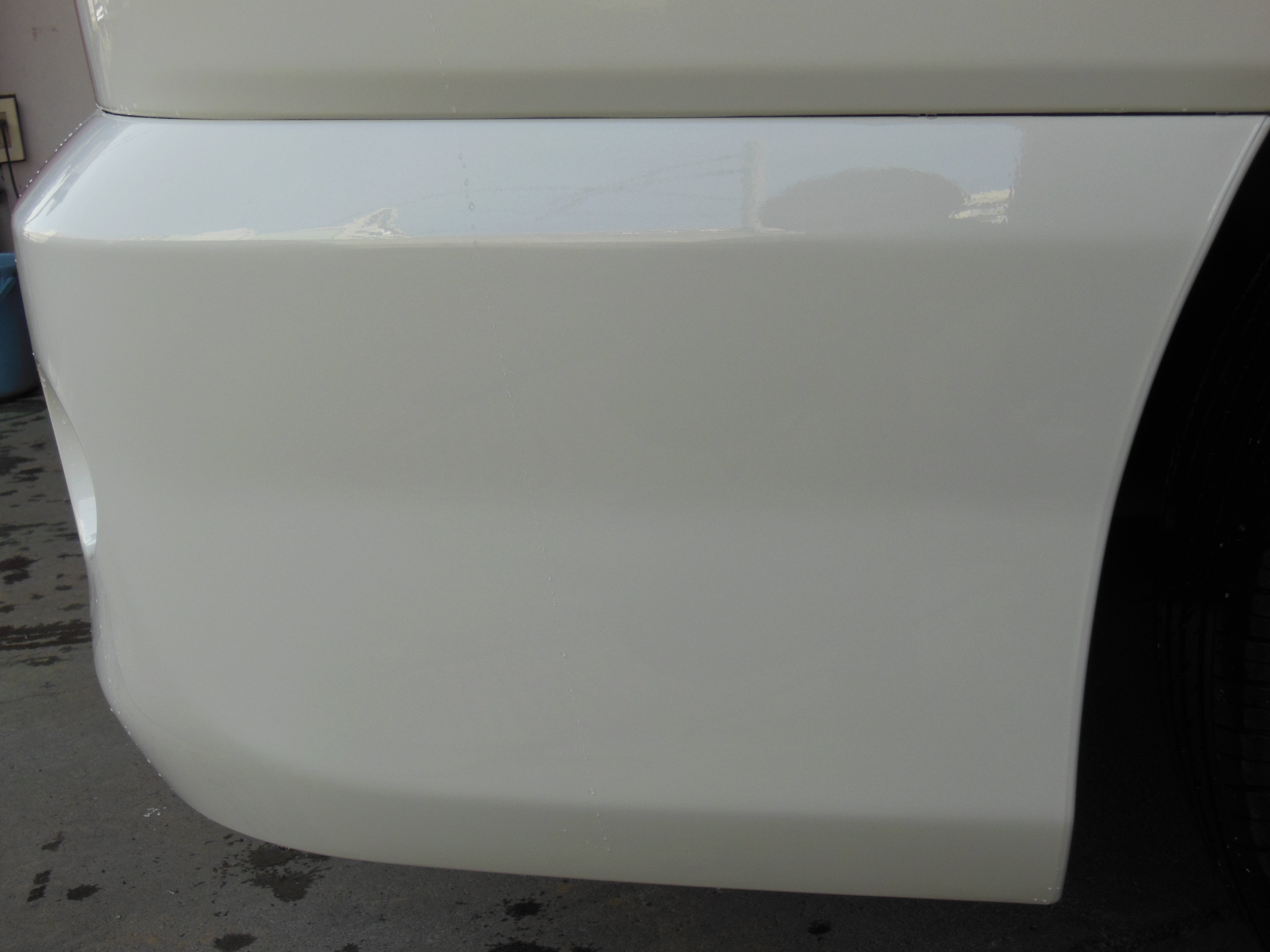 車体色が白なので画像ではわかりずらですが、リヤ・クォーターパネルとリヤ・バンパーの修理です。